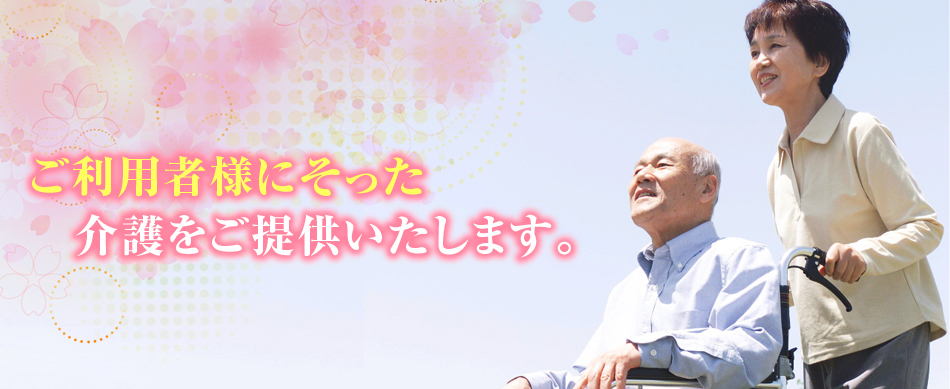 ご利用者介護技術様の意思及び人格を尊重し、地域や保健医療サービスとの連携し、明るくなごやかな雰囲気の中で、適切な介護技術をもって、丁寧なサービスを提供します。